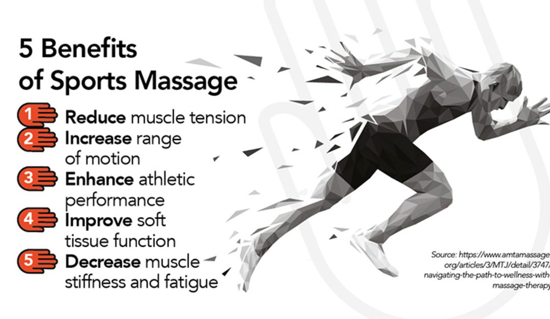 Our March campaign is all about the many benefits of massage therapy and this infographic shows 5 benefits of sports massage therapy.